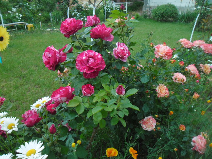 Ai perfecta dreptate. Am plantat la inceput trandafirii pe care i-am admirat in alte gradini de pe sunphoto fara sa tin cont de zona in care ma aflu. Aici, la malul marii, in caldurile de peste vara, nu le merge bine, de exemplu, trandafirilor englezesti decat daca beneficiaza de umbra si soare doar in a doua parte a zilei - a trebuit sa-i mut pe toti. Pentru zonele in plin soare se preteaza doar cei floribunda. Am plantat vreo 90 de soiuri dar nu i-am pozat pe toti pentru ca sunt inca mici. In functie de cum se vor dezvolta voi trage si eu concluziile de rigoare. Momentan experimentez si incerc sa gasesc cele mai bune combinatii trandafiri-plante perene pentru gradina mea.